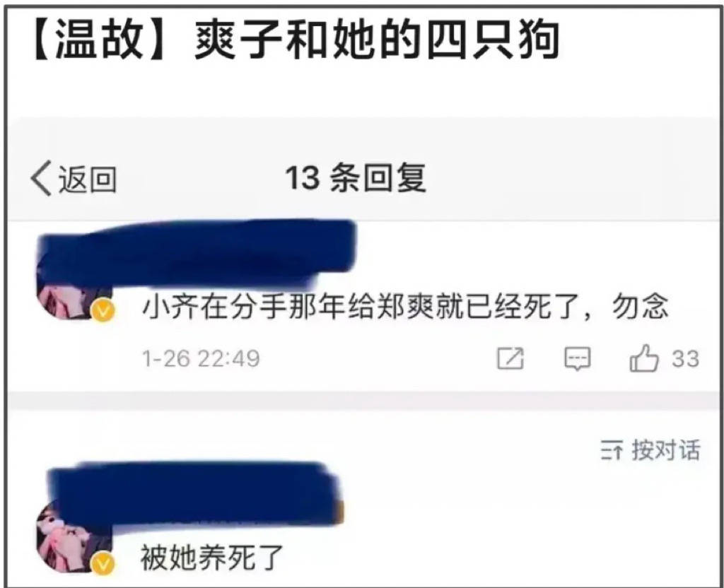 她已经养了四条狗,前面的3条都被她养死了。养小动物需要足够的耐心和爱心,显然郑爽是没有的。