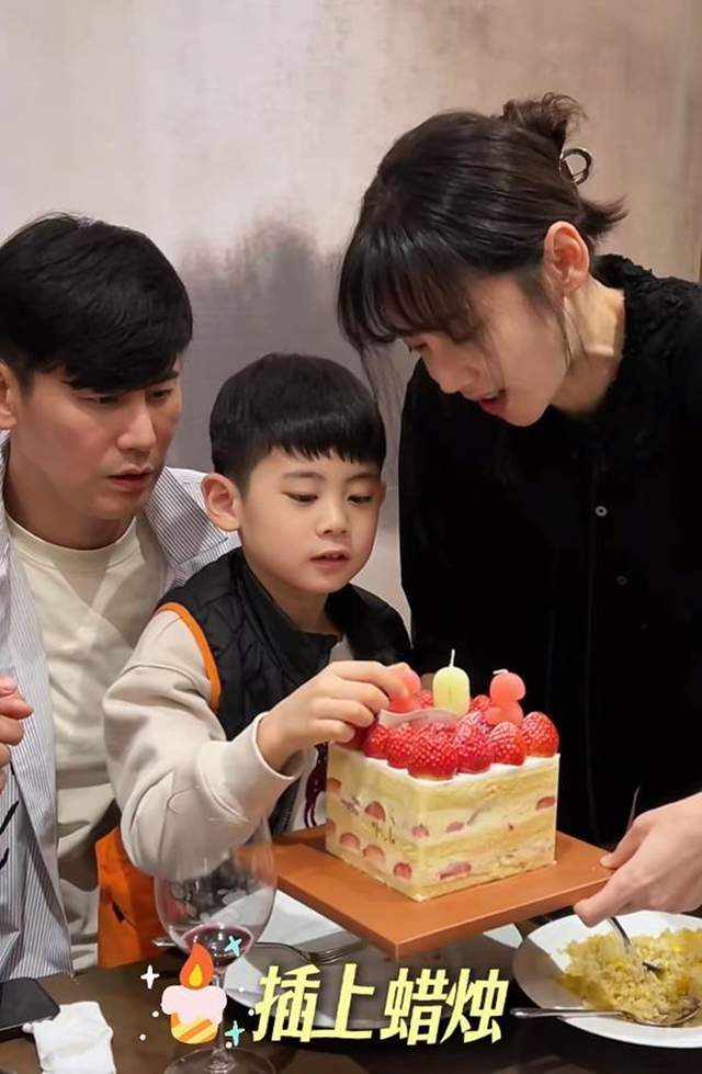视频中秋瓷炫于晓光7岁儿子也有出镜,只见一家三口吃的差不多的时候,秋瓷炫端上水果蛋糕庆祝新一年的到来。