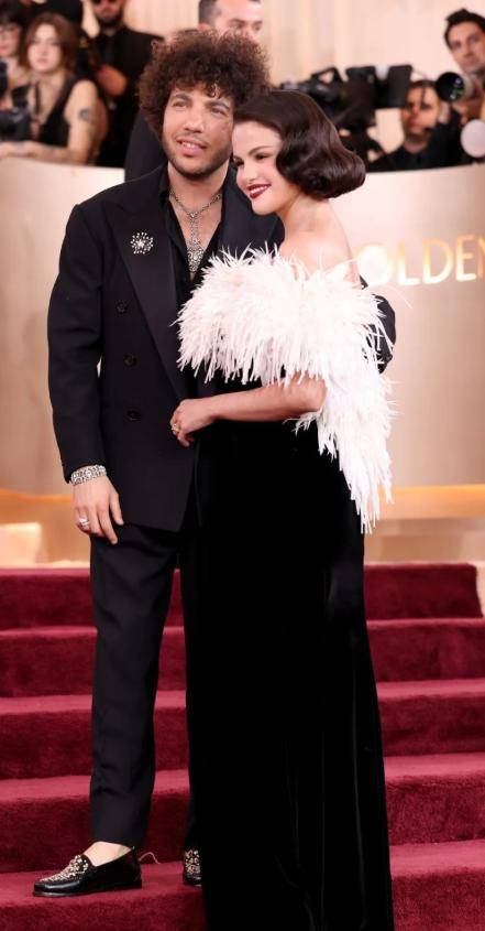 红毯上的甜蜜时刻,当属SelenaGomez和男友Benny Blanco的牵手亮相。
