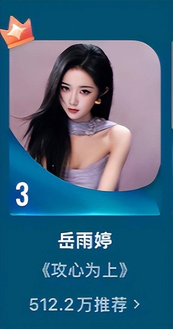 先是岳雨婷,以512万票拿下第三名,她是业内公认的高产代表,仅去年一年就有7部剧热度破4000万。
