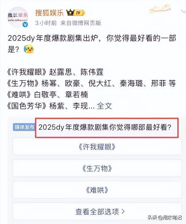 最近,微博搜狐娱乐发起了“2025dy年代爆款聚集你觉得哪部最好看”投票,吸引了无数网友的参与。