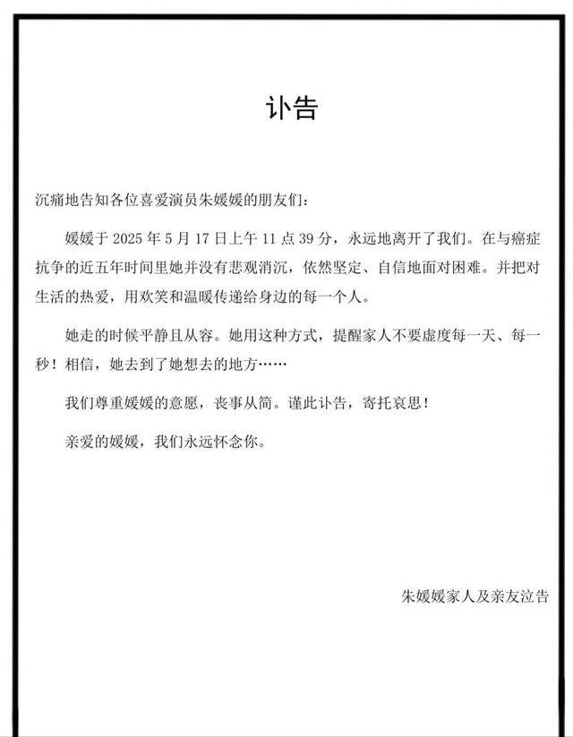 2025年5月1日,《小城大事》正式杀青,朱媛媛在社交平台发了一段话:“高雪梅的人生永远潇洒。”这是她最后一条公开动态。