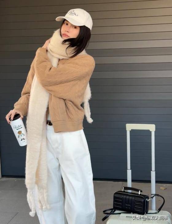但仔细端详就会发现,针织衫领口特意设计的宽松弧度、西装下摆刻意遮住的腰线,都悄悄暴露了她产后哺乳期状态——