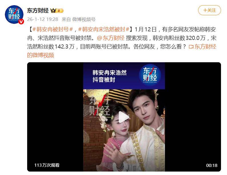 1月12日,一则“韩安冉抖音账号被封”的消息,再次将这位话题不断的网红推上风口浪尖。面对自己与前夫宋浩然合计超460万粉丝的流量入口被“一锅端”,韩安