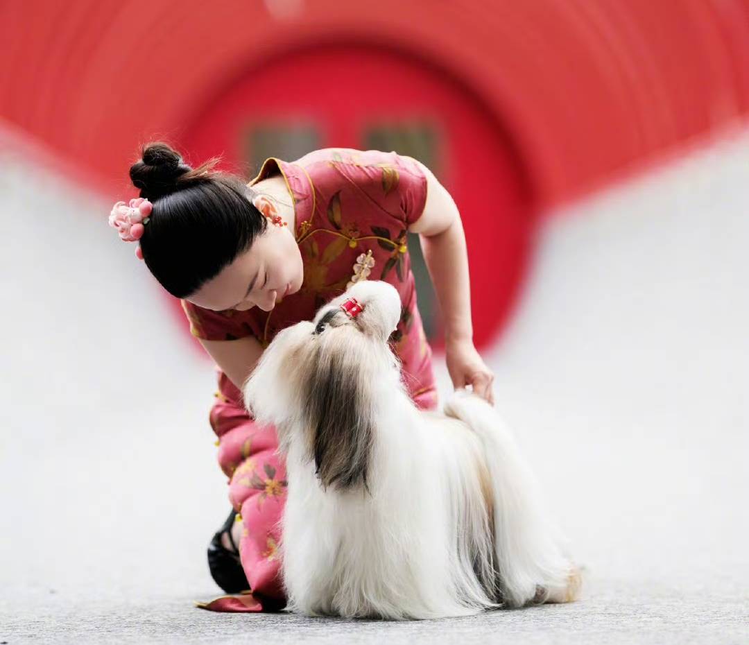 开叉的旗袍和西施爱犬灵动的跃动,组成了“优雅的东方文化符号”。