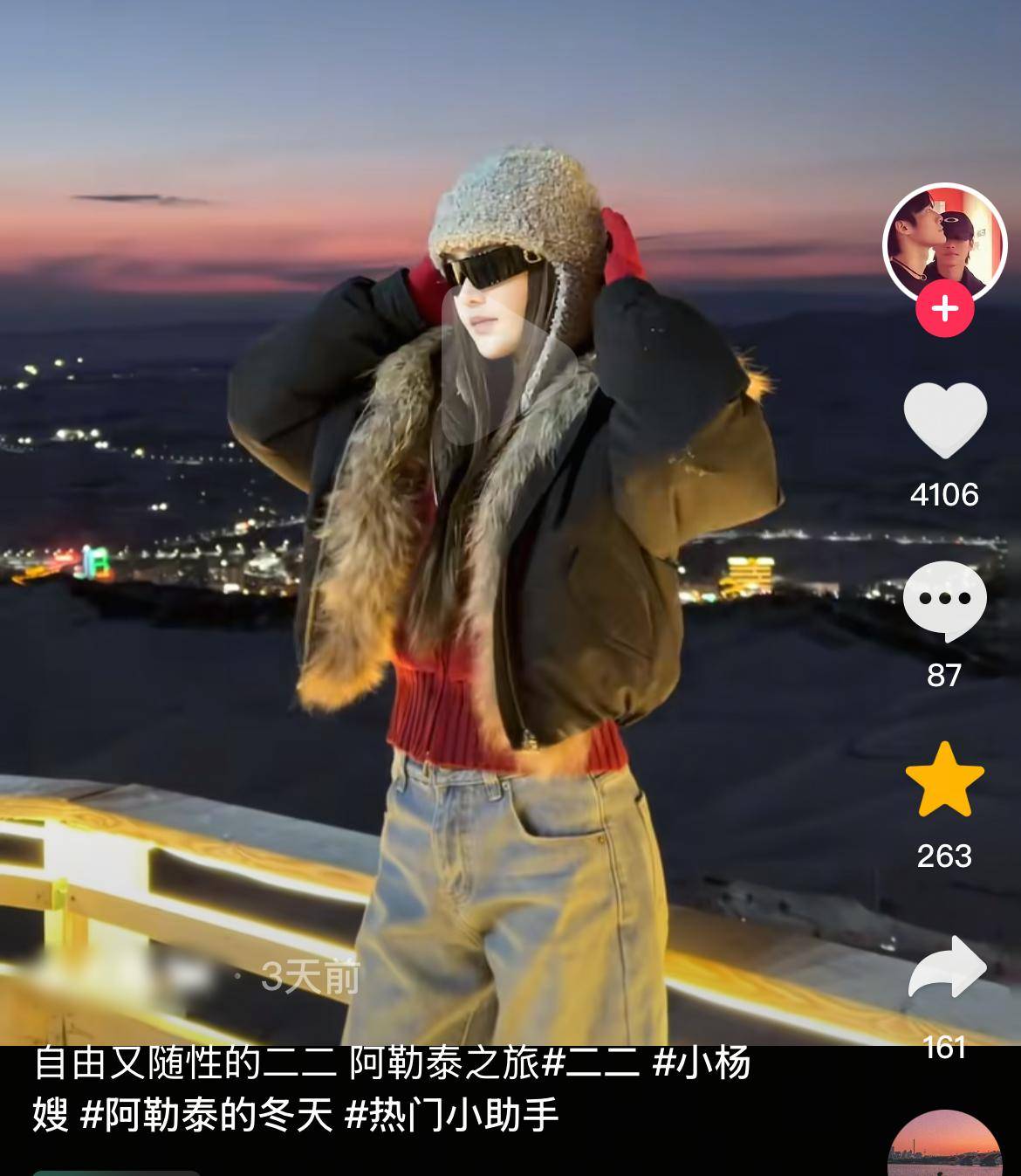 据知情人士透露,她目前在阿勒泰旅游。曝光的画面中,小杨嫂(二二)仍然是一如既往地漂亮与潇洒,打扮方式也是越来越新潮,不过是不是独自前往,暂时不好说。