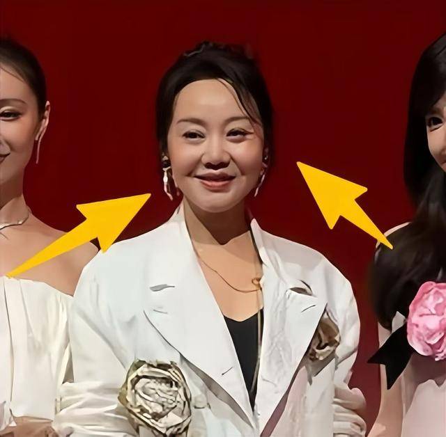 闫妮罕见的也来参加娇兰红毯活动,她身穿白色西装外套搭配黑色网纱裙,一身很廉价的穿搭, 像是几十年前的衣服。