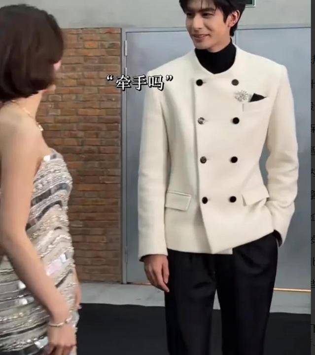 台下候场的时候,宋威龙就主动问赵今麦“牵手吗?”,赵今麦笑着伸出手,两人一起牵着手走向红毯。