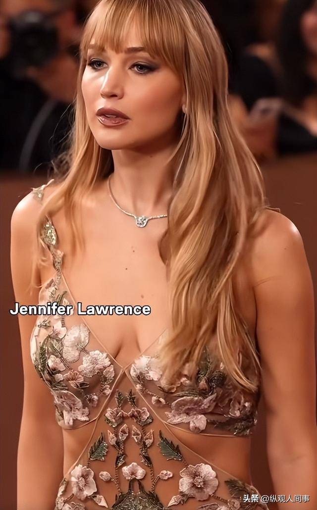 就在 Lisa 的造型引发讨论时,詹妮弗・劳伦斯的亮相直接让红毯现场沸腾。