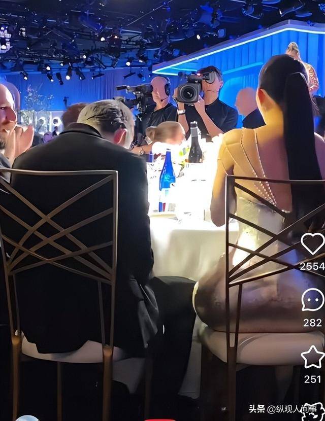 凯莉虽缺席官方红毯,但亮相场内时身着阿什工作室银色金属网纱长裙,深 V 领口勾勒完美曲线,与甜茶的黑色系穿搭形成鲜明呼应。