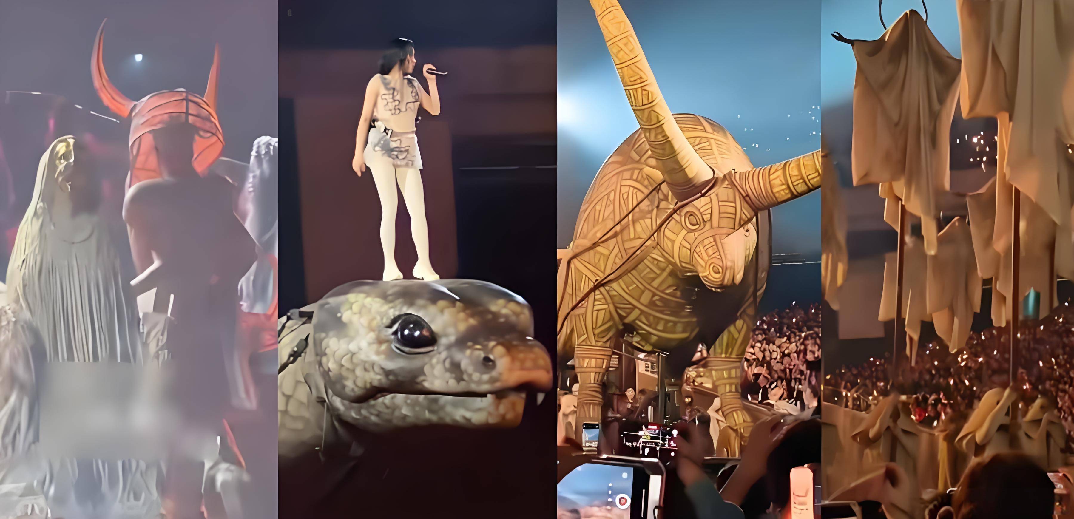 随着演唱会画面在网上传播,关于舞台设计的争议迅速发酵。机械蛇、金色公牛等大型装置,被部分博主解读成带有特殊隐喻的符号,甚至被贴上“仪式感过强”的标签。更夸张的是,这些解读最终演变成举报,相关内容被集中递交至多地文旅部门。