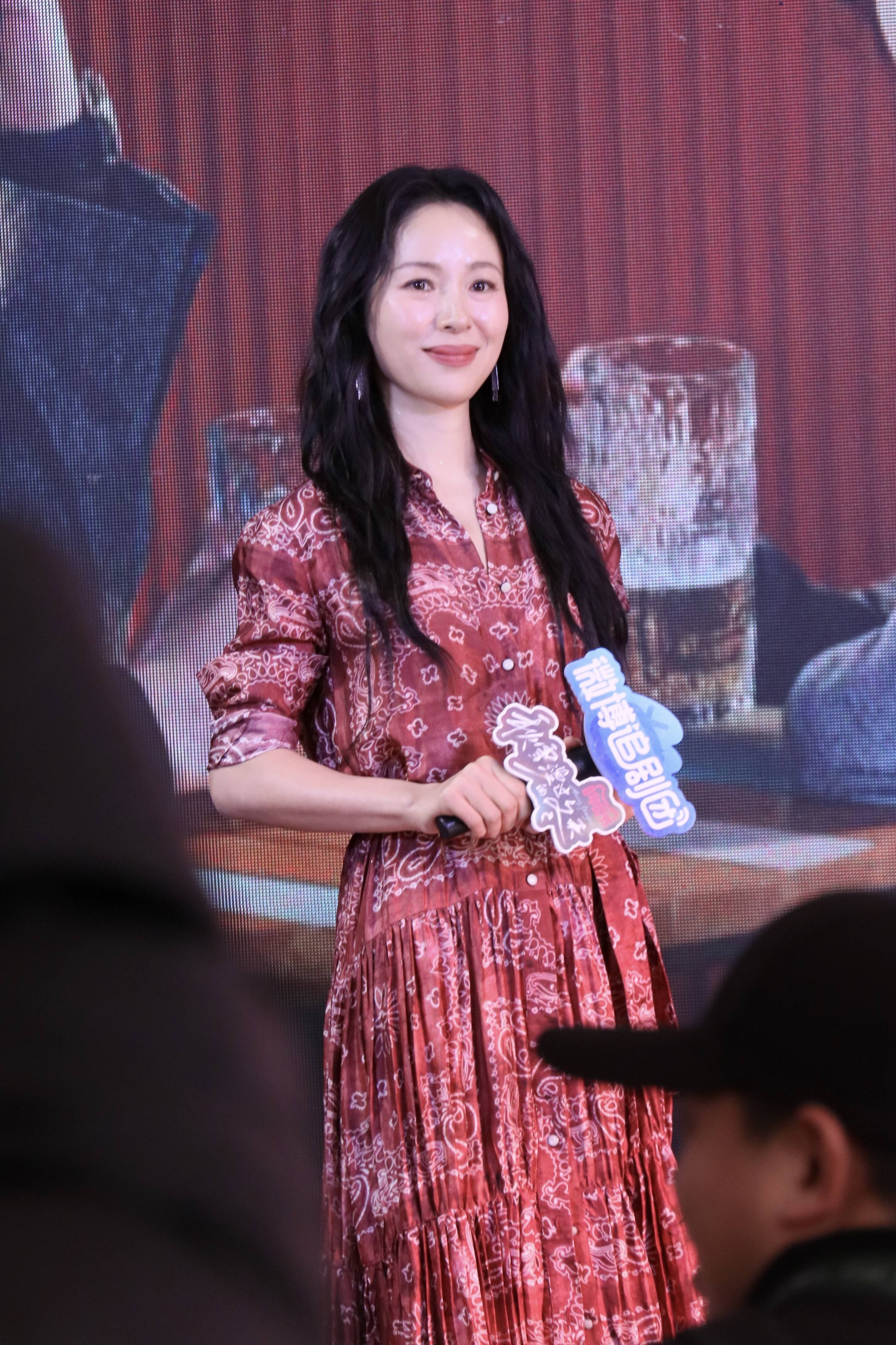 张子枫身穿白色开衫和灰色半身裙,搭配卷毛单马尾尽显青春气息。她也紧扣角色设定,现场展示为戏所学的手语,教大家比出“月亮很美”等暖心语句,互动环节可爱十足。