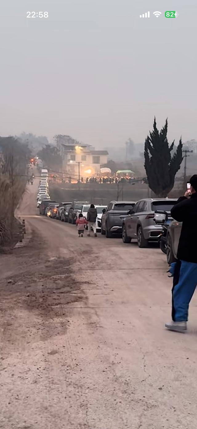 车辆从村头排到村尾,足足堵了十多公里。原本计划的两头猪,哪儿够上千人吃?