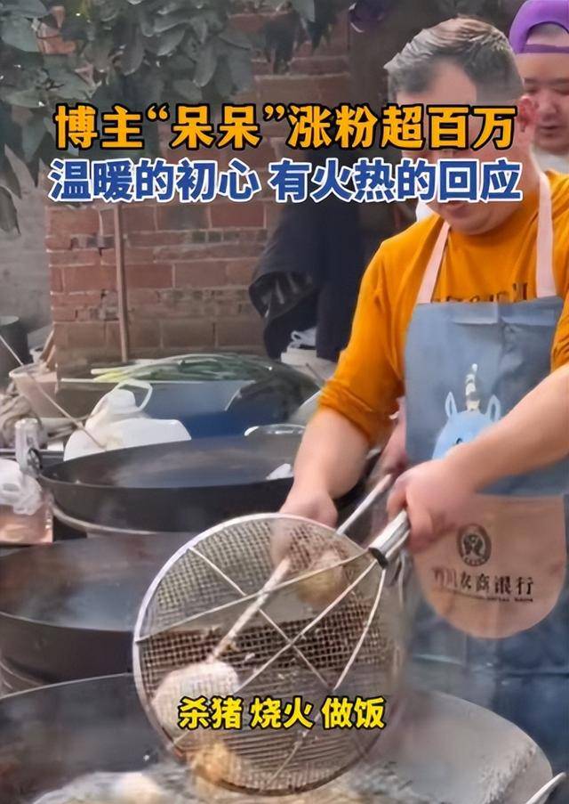 早期赶到的网友还挺好,主动分工按猪、烧火、炒菜。
