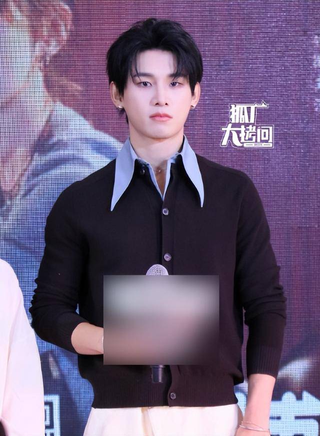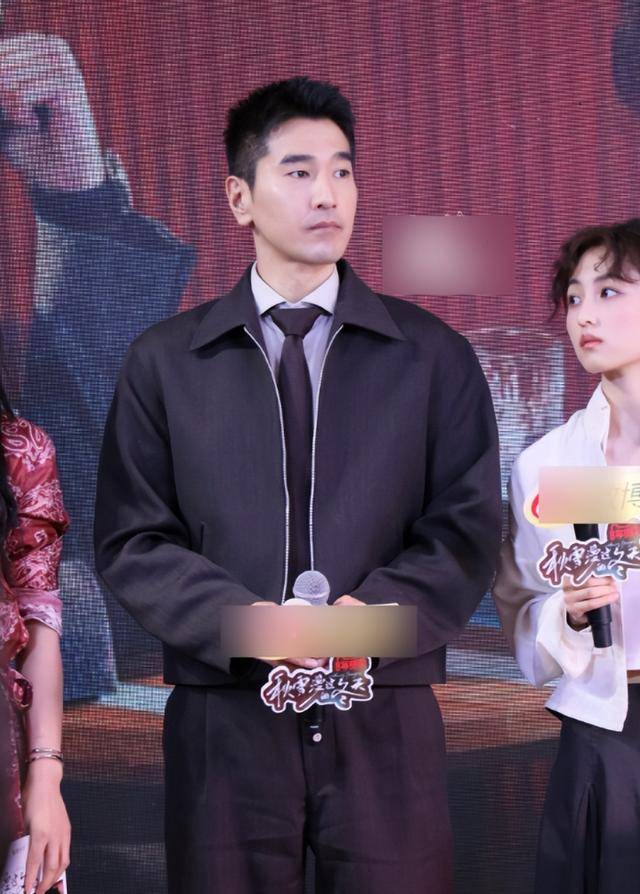 他穿着黑色上衣和西装裤,看起来没睡醒,眼神呆滞,完全没有了以往的帅气模样。