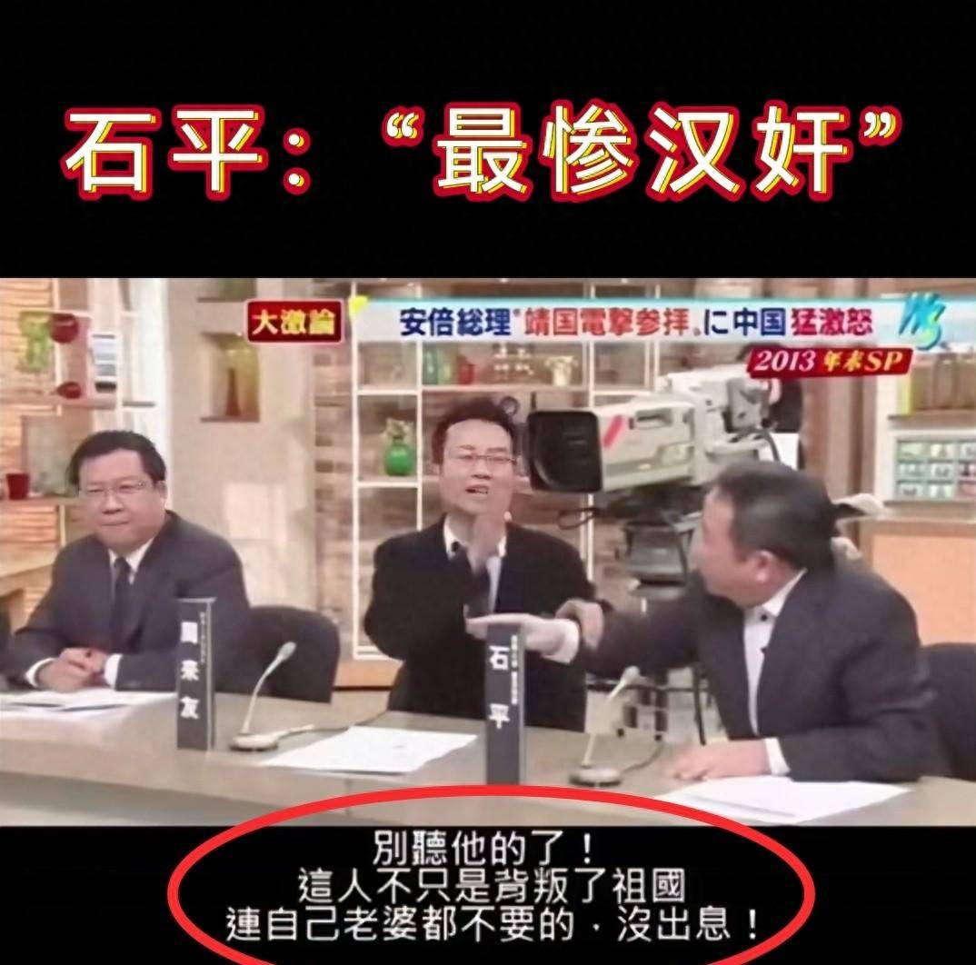 在台湾某政论节目里,嘉宾拍着桌子骂:“石平连畜生都不如,老婆孩子在中国,他却不管不顾,只顾自己的生活,