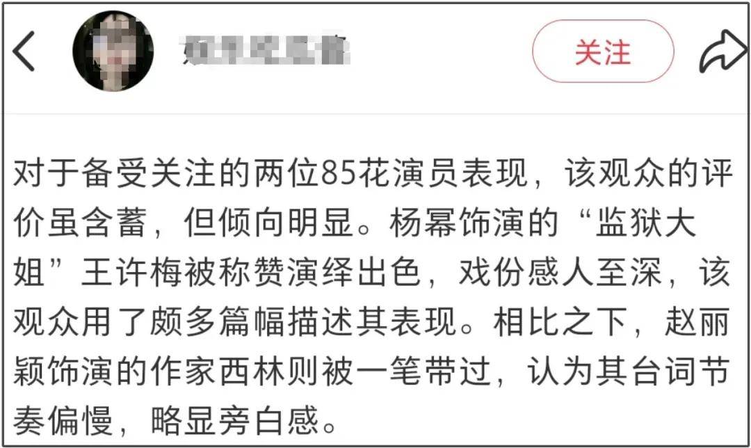 赵丽颖比杨幂先一步成功转型,从《幸福到万家》、《风吹半夏》到《第二十条》,要么有口碑要么有奖项,拿了两个视后奖还有百花奖女配。