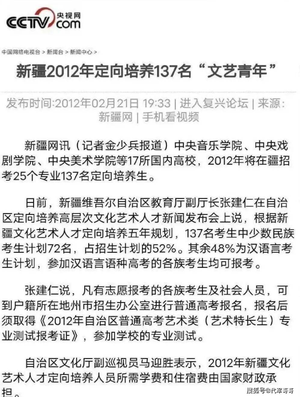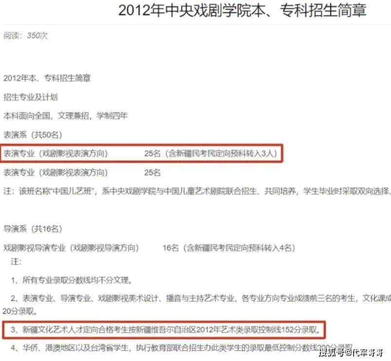 网友在中戏声明的基础上展开深挖,发现了关键的争议突破口:中戏2012年虽未招收“新疆班”,但当年招生简章显示,计划从新疆民考民定向预科转入3人至普通本科班。
