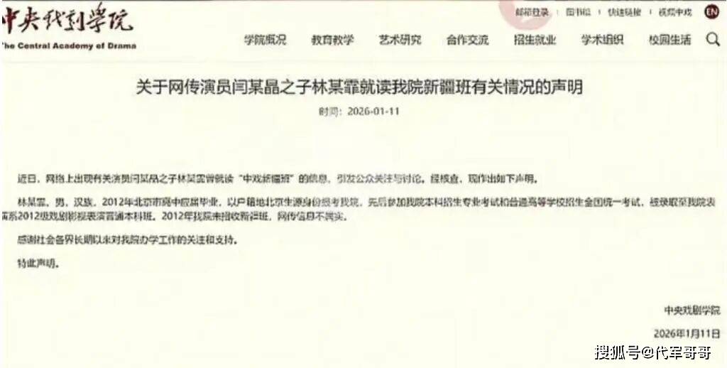 面对汹涌的舆论压力,中央戏剧学院于1月11日发布官方声明紧急辟谣。声明明确两点核心信息:一是林傲霏系2012年北京市高中应届毕业生,以北京生源身份正常参加专业校考和全国统一高考,最终被表演系普通本科班录取;二是2012年学院并未招收“新疆班”,网传相关信息不实。校方的直接回应本想为事件画上句号,却未料引发了更深层次的质疑与二次举报。