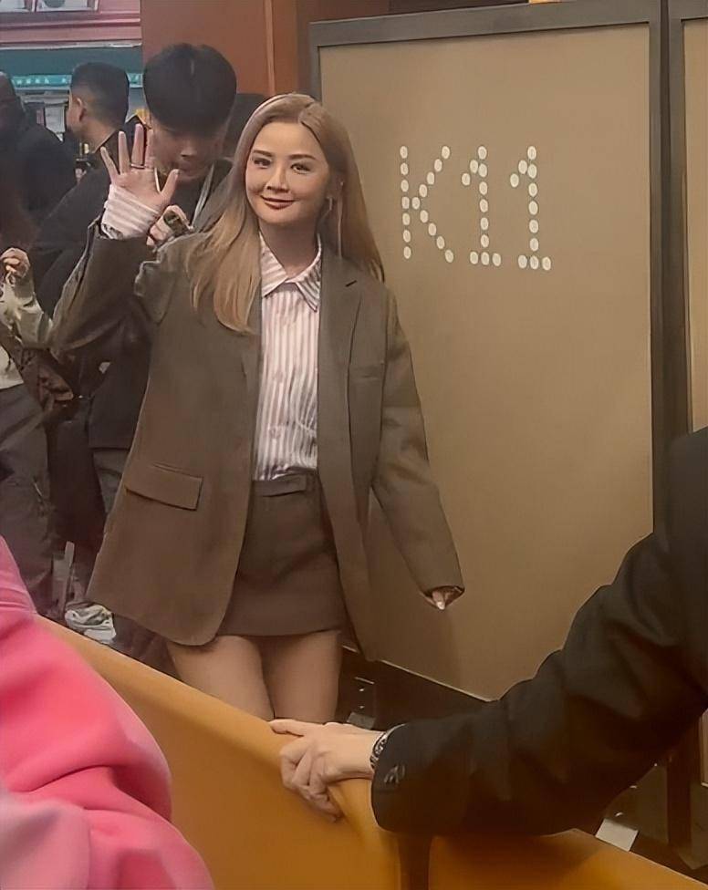 当阿娇和阿Sa手拉手现身时,现场尖叫差点掀翻天花板。阿Sa一身浅卡其色西装配粉色条纹衬衫,金发扎成低马尾,活脱脱 “甜飒职场美人” 模板,粉丝镜头里的她依旧是那个元气满满的 “奶包”。