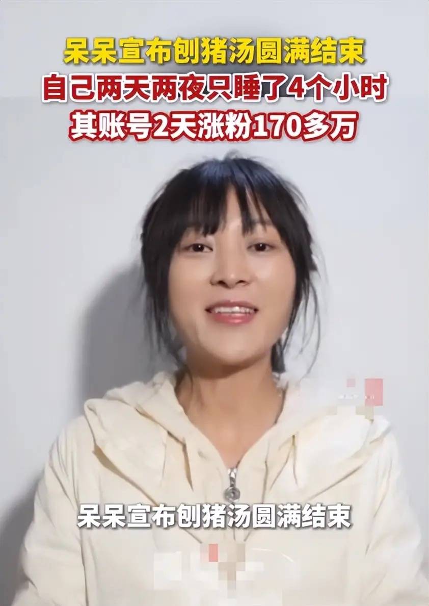3天涨粉接近200万,1分钟广告报价2400,3天赚了450万。就是给网友吃刨猪汤,吃到过年也稳赚不赔,赢了名声又赚了流量,钱都进袋不好吗?