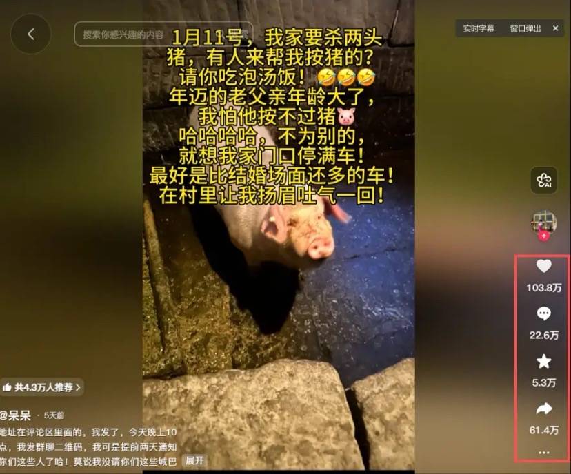 这个小女孩,可能是瞬间慌了神,她的确没想到随手发的一条视频、就引来这么多关注,更没想到家门口来了这么多要吃刨猪汤的。