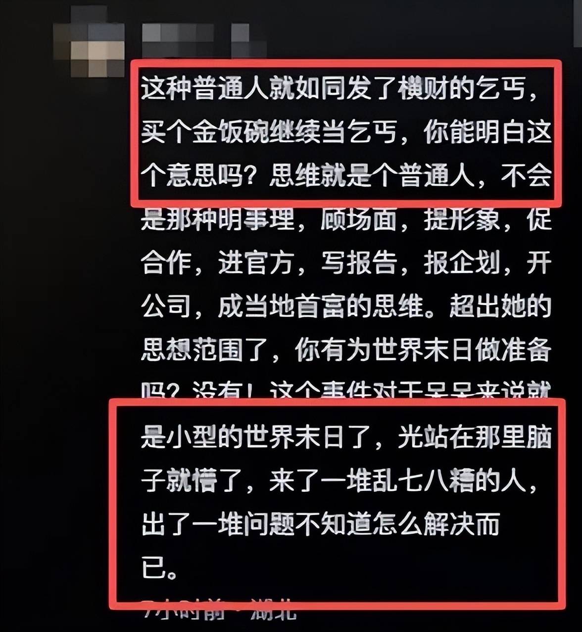 看她挺年轻的、听说之前是做美甲的,不知道读过几年书、看问题有点眼光不够长远。就是发了横财却不知道如何站得更好的那种!