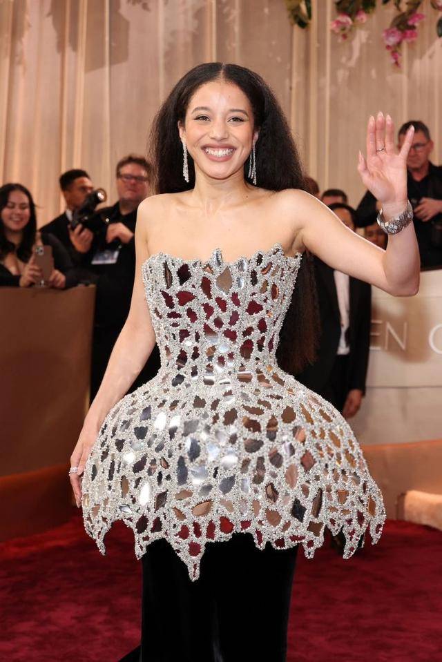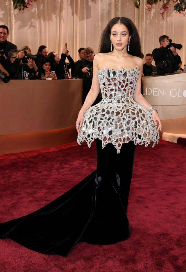 在金球奖红毯上,她延续了这种风格,但又进行了创新和突破。