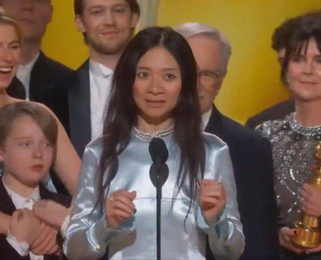 在当晚的金球奖红毯上,赵婷导演全裹出镜,与那些穿着性感、风情万种的外国女星形成了鲜明的对比。
