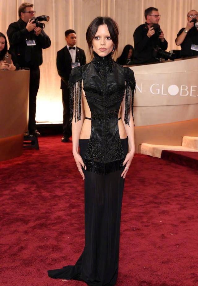 Jenna Ortega 身着 Dilara Findikoglu 2026 春夏礼服,亮相金球奖红毯。