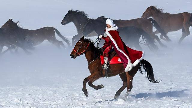 一匹马,一件红斗篷,在大雪地里飞奔,那叫一个飒!