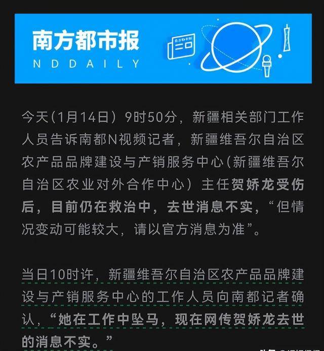 说贺娇龙确实坠马了,但人还在医院救治,去世的消息是假的。