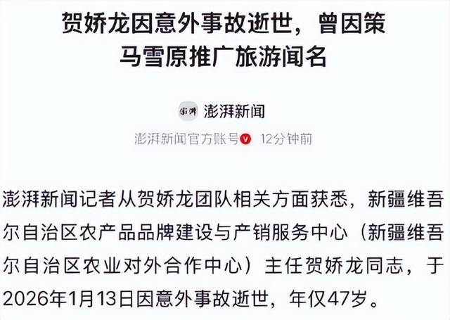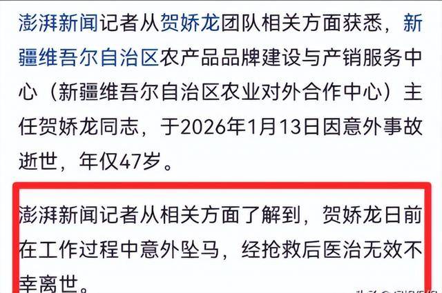 1月14日早上,热搜上突然炸开了锅。有媒体报道表示贺娇龙坠马去世了,消息传得飞快,不到半小时就上了热搜第一。不少网友刚到这个消息的时候,第一反应是不敢相信。毕竟几天前还看