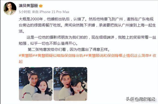 有网友猜是不是为了博热度,但黄慧颐这些年作品不多,保剑锋也不算顶流,犯不着拿20多年前的婚姻说事。