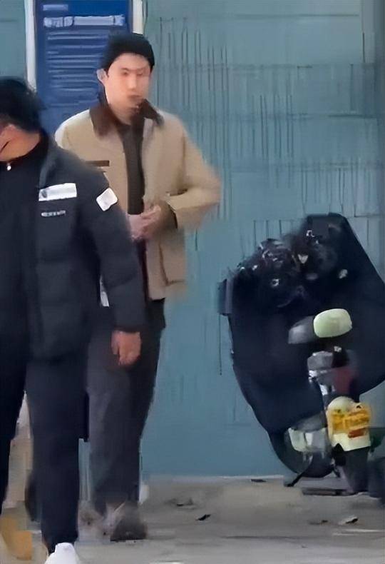 从网友拍摄的生图来看,他穿着深色外套搭配卡其色裤子,穿搭风格被吐槽有些老土,但考虑到是拍戏需要,大部分网友都表示理解。