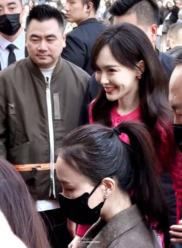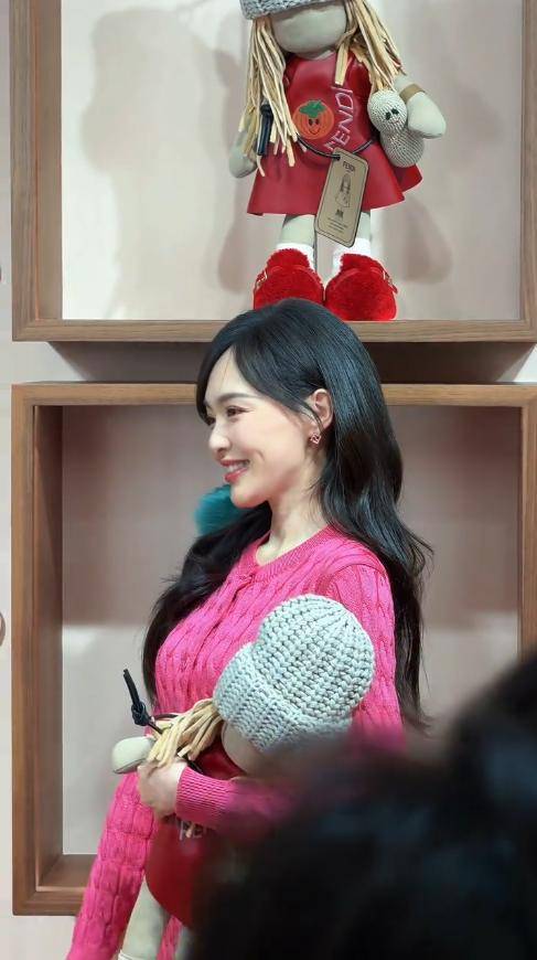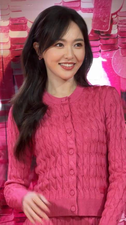 不同于以往荧幕上的纤瘦形象,这次她身穿一套粉色毛衣套装,搭配银色高跟鞋,整个人散发着成熟女性的魅力。