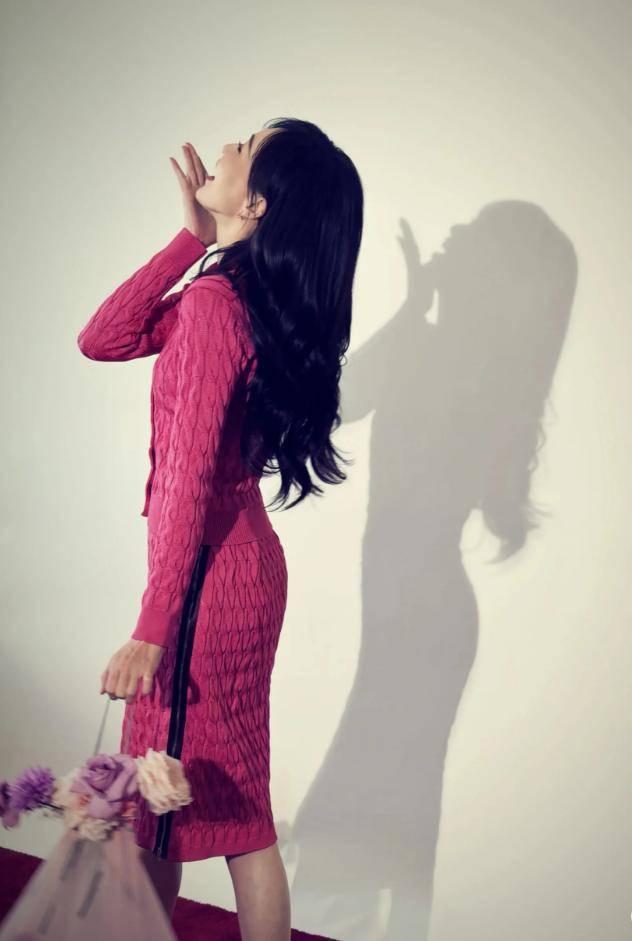 粉色本身就给人温柔甜美的感觉,搭配她饱满的身材,既保留了女性的柔美,又多了几分成熟的韵味。