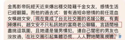 据了解,一名被她激怒的贵妇直接和媒体爆料称,赵文安曾私信过自己的富商老公撩骚,言语极尽挑逗,且赵文安连闺蜜的有钱男友也不放过,台北社交圈人人对她闻风丧胆