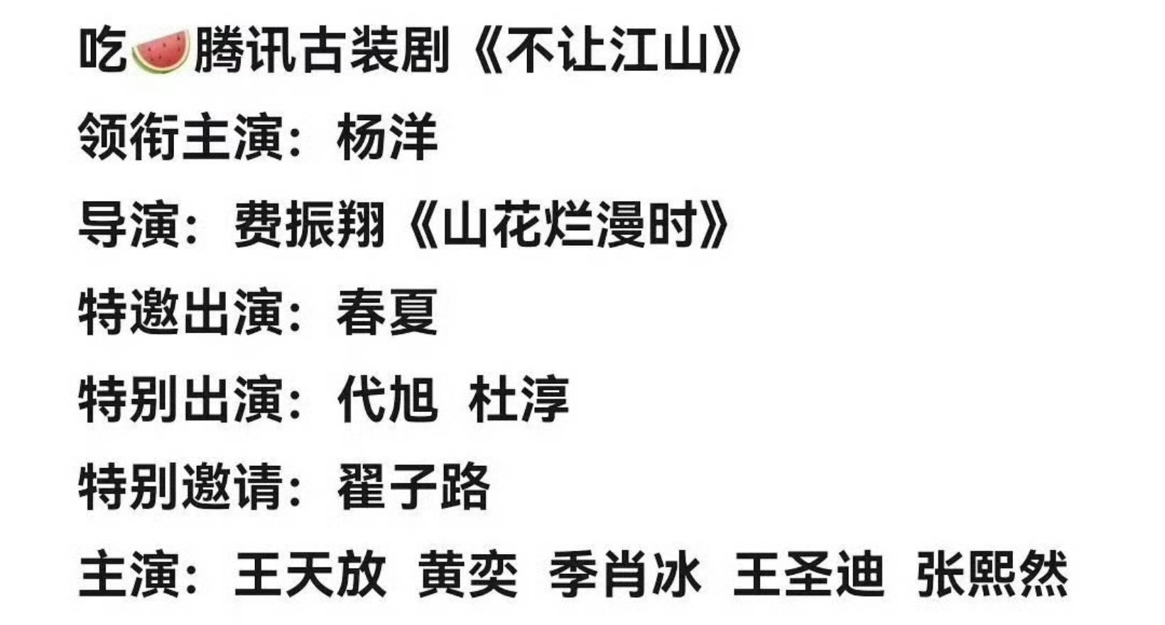 不过阵容变动也让网友操碎了心,堪称“年度抓马连续剧”。男主从网传的陈哲远换成杨洋,平台还特意给陈哲远补偿了现代剧资源;女主更是一波三折,先定周洁琼,中途传换成张雅钦,最后又绕回原定人选,网友调侃“这女主之位比剧中权谋还刺激,建议单独开个衍生剧”。好在最终阵容里还有翟子路、杜淳、春夏等实力派加盟,尤其是翟子路的特邀主演身份,让大家期待这波“少年群像+戏骨护航”的组合能擦出不一样的火花。