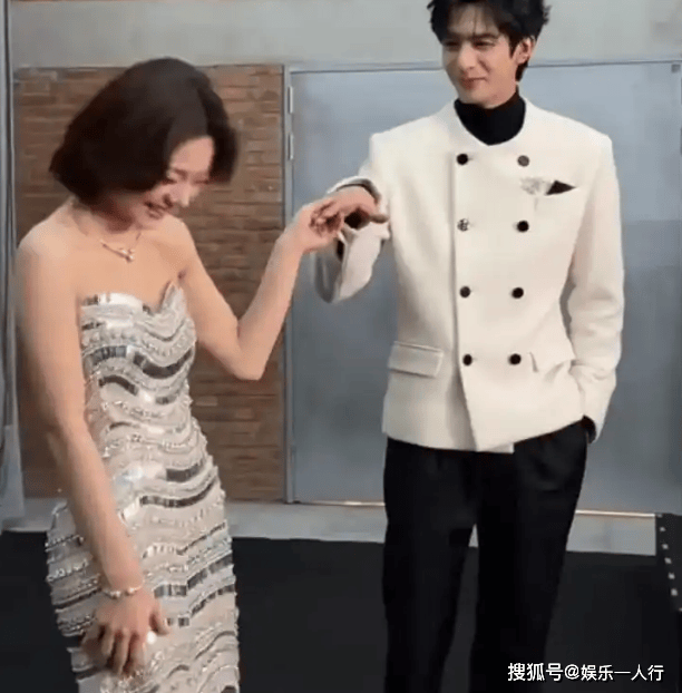 张远风衣更离谱。 深V领口露出内搭白T,腰带系得松垮,被截图做成表情包配文“娇兰:这人谁? 凑数来的吧”。 他本人倒没受影响,合影时咧嘴笑特憨厚,可惜镜头根本不给特写。