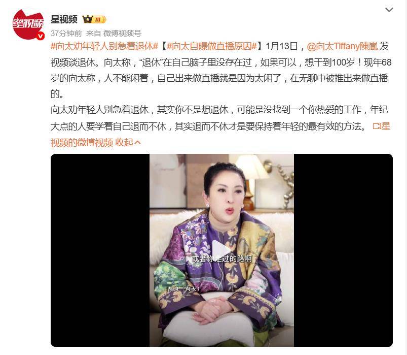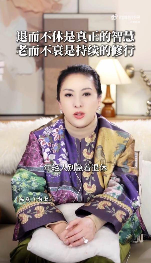 据1月14日报道,向太陈岚一句“年轻人别急着退休”的建议,直接冲上了热搜。这位68岁的商界女强人在视频里直言,“退休”这词儿在自己脑子里压根不存在,甚至