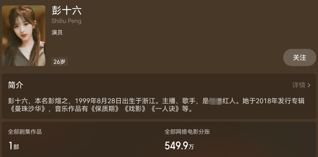 彭煊之的网名是彭十六,她是初代网红,全网粉丝3000多万,早在2019年,彭十六就能参加浙江卫视举办的盛典,演唱个人单曲了。