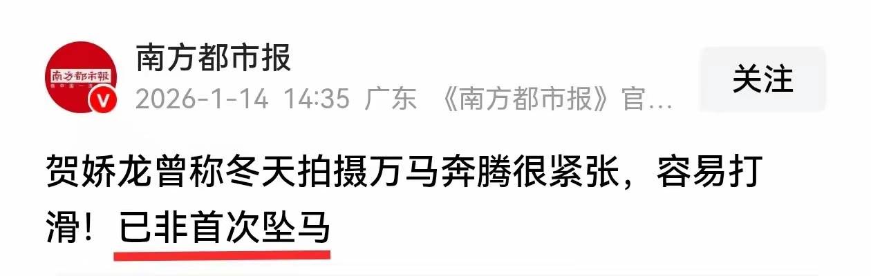其实冬天拍摄万马奔腾的危险,贺娇龙并不是不知道。