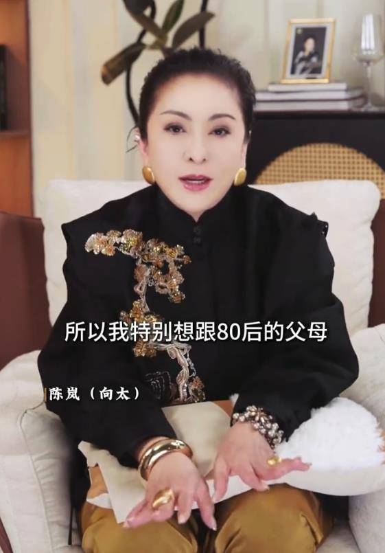 “鸡娃不如鸡自己”——近日,向太陈岚在社交平台视频中抛出的这句话,在80后父母群体中激起了强烈共鸣。镜头前,她谈及儿子向佐“到了40岁才开始找到人生方向”,话锋随即转向更广大的同龄人:“我最心疼的就是80后这一波人,压力最大、责任最重。”这番直言,精准刺中了当下许多中年家庭的生存痛点。