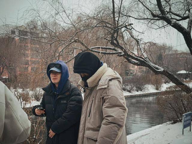 他们没穿奢侈品牌,就穿普通的深色外套,戴着厚棉帽,只露出一双眼睛。