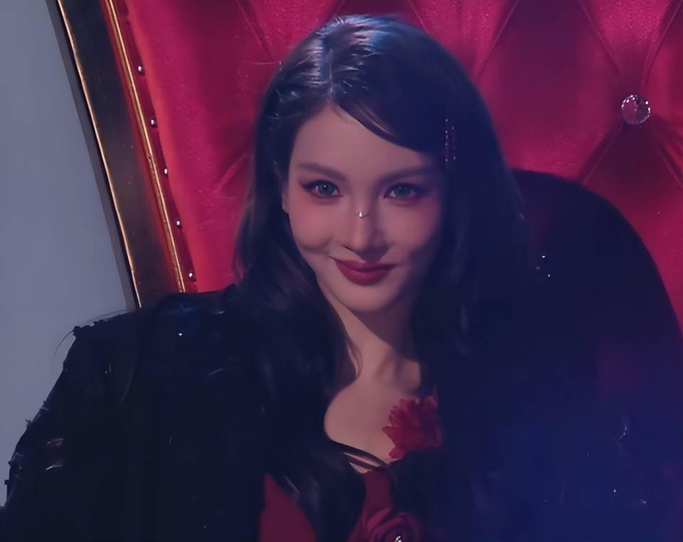 没有最流行的高颅顶、大卧蚕,依旧是她最爱的浓重眼线加裸唇妆,腮红也没打太多。