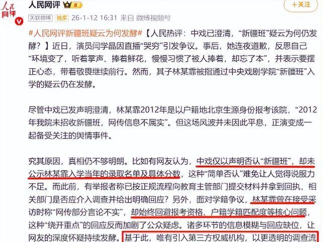 如果说“哭穷”只是让闫学晶的人设崩塌,那么“中戏新疆班”事件则让她陷入了更深的信任危机。