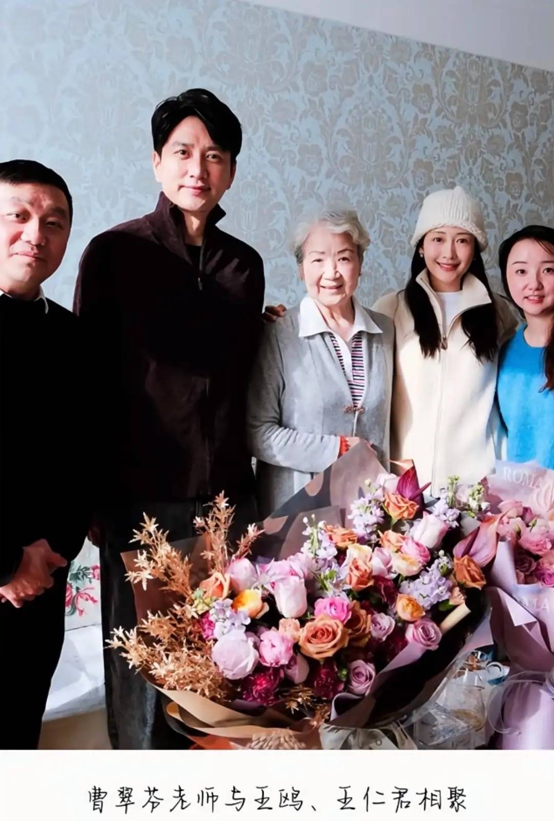 看望曹翠芬的年轻演员们,还带了好多鲜花。大家站在一起合影,曹翠芬站在中间的C位,王鸥一只手搭在她肩膀上,这样的画面太暖了。