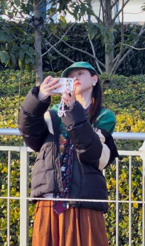 后来到了自拍环节,她干脆蹲在地上调整角度,还微微撅起嘴巴,娇俏的模样和荧幕上的成熟形象反差极大。