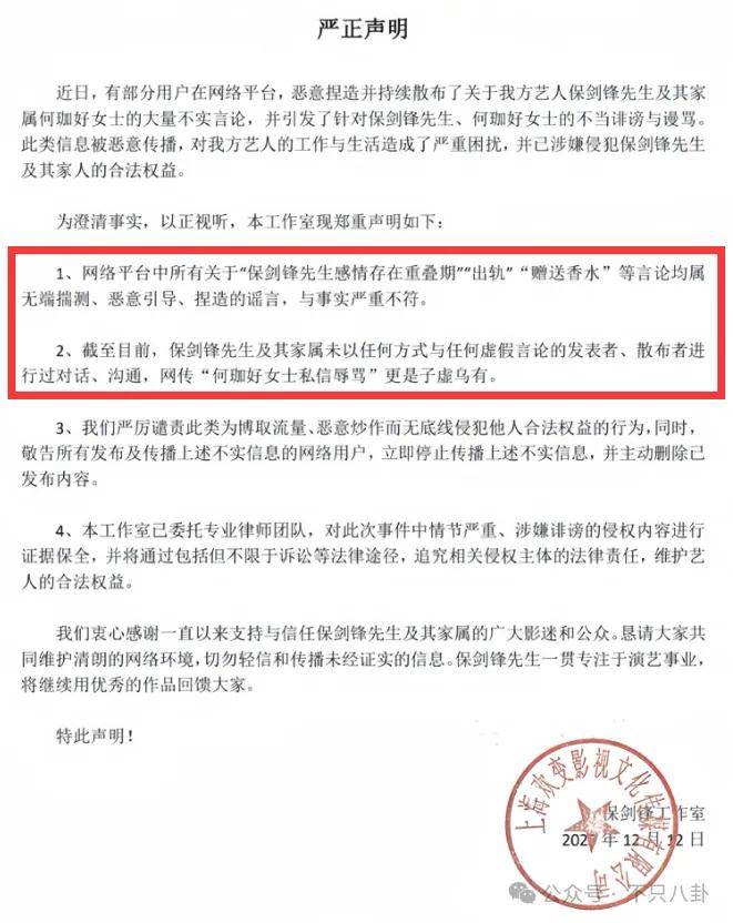 1、保剑锋感情重叠期、出轨、送香水等都是与事实不符的谣言;